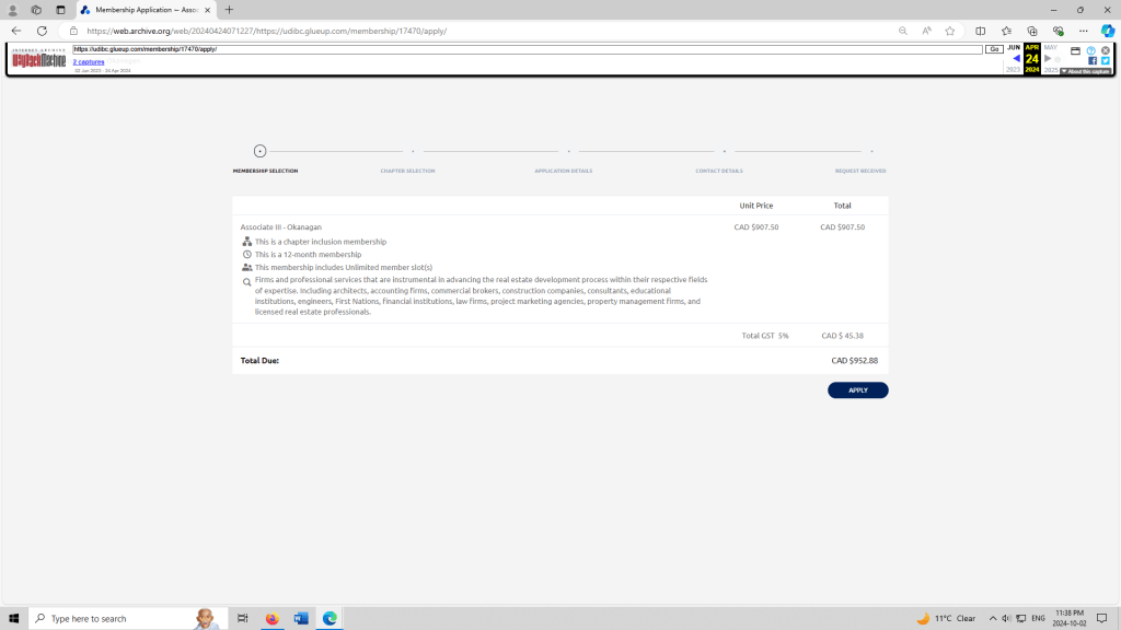 It can be discerned from the details on Archive.org of a historical snapshot of the UDI’s website, that BC Assessment paid for a (UDI) Okanagan Associate III membership in April of 2024. This can be discerned in that the payment BC Assessment made for membership renewal in 2024 on the receipt, is the exact same cost of an Associate III membership in early 2024.