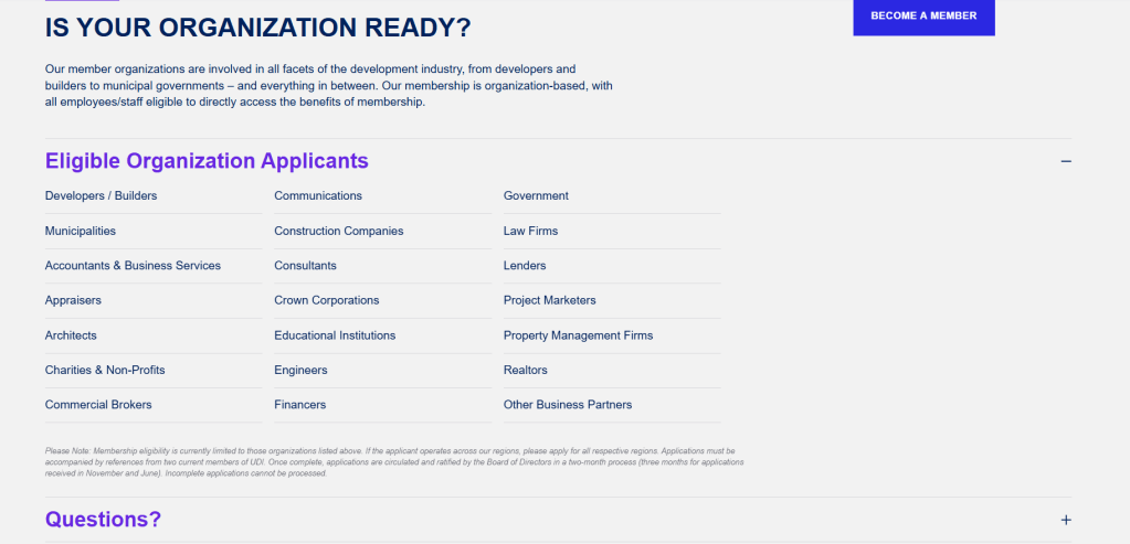 That’s right, the UDI’s membership system is organization-based, it is not individual-based. There is no way on their website for individuals to qualify/join as UDI members, unless they do so as employees at the behest of the company and/or other corporate entity that they work for. In other words, it appears that there is no way BC Assessment could be reimbursing their employees for UDI memberships as they have claimed.