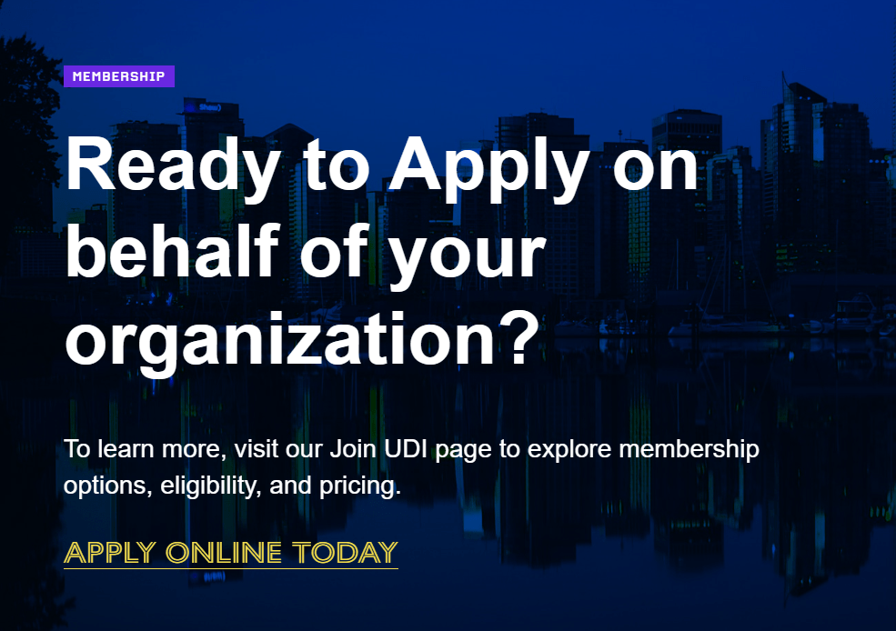 If one clicks on the “membership” link in the contents on UDI.org at the time of writing, they land on: https://udi.org/get-involved/member-benefits. This makes clear that only corporate entities (organizations) are eligible: