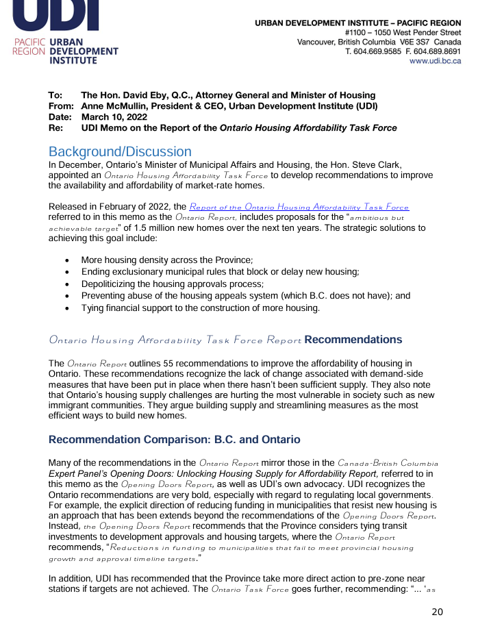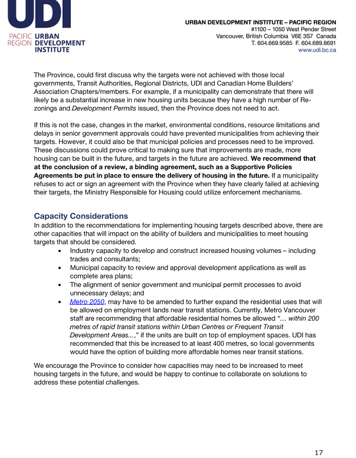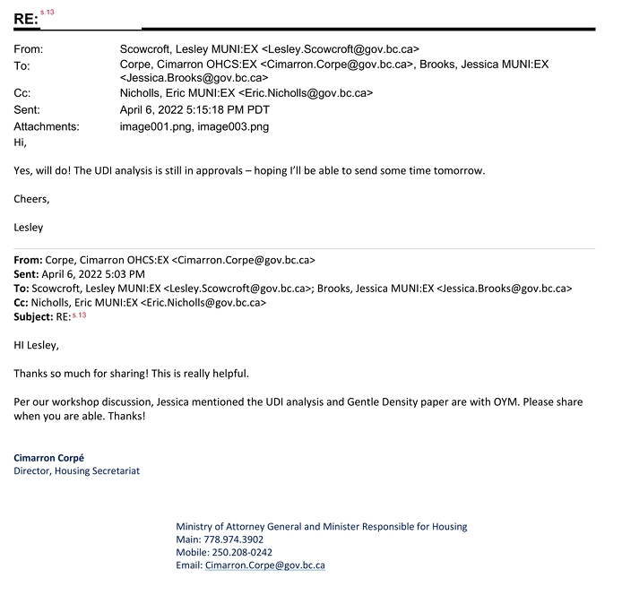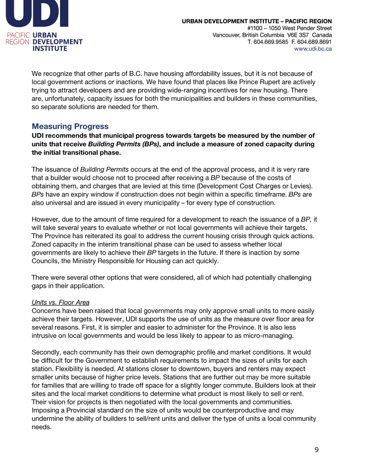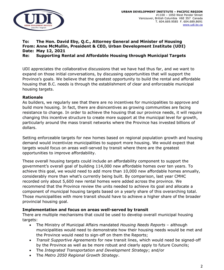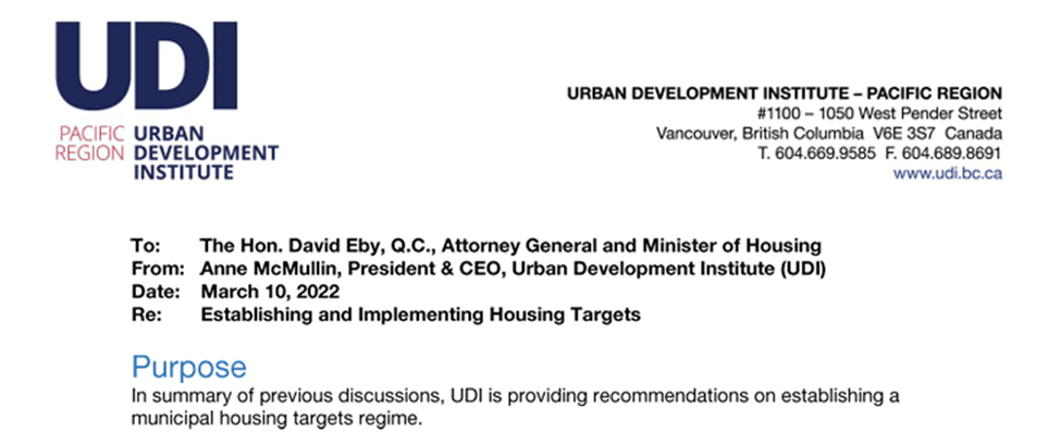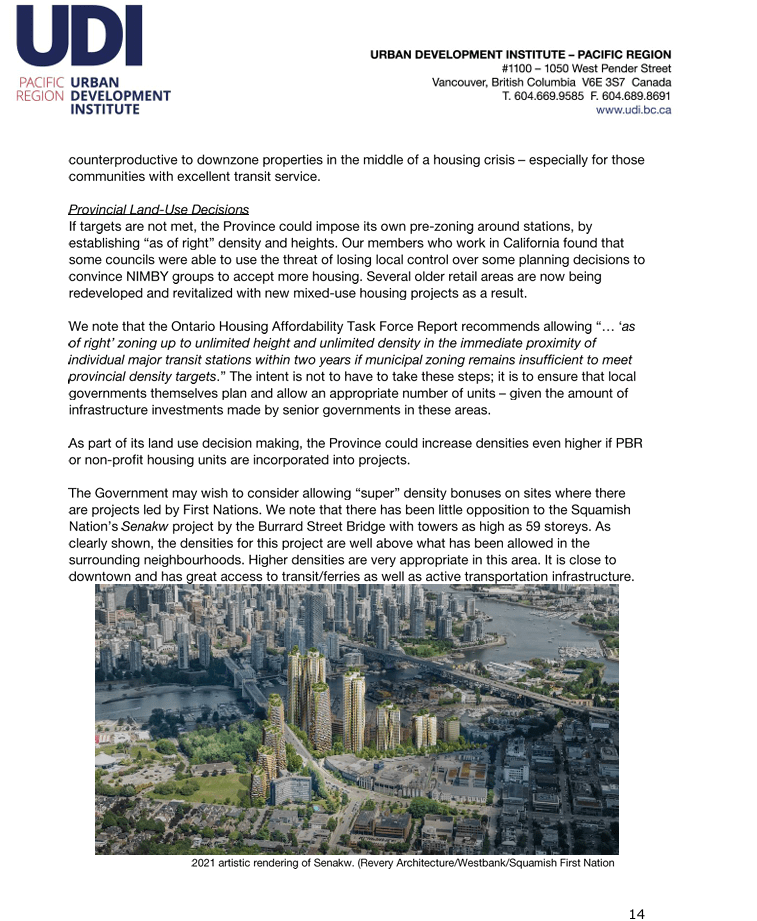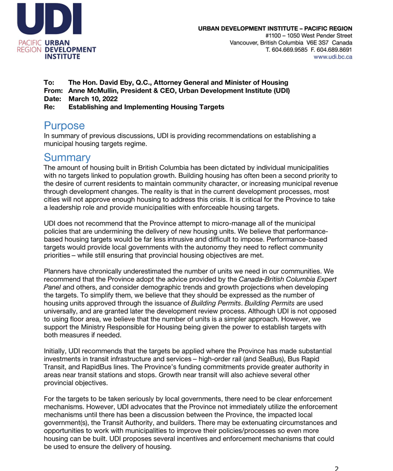 The following excerpts are from a UDI letter to David Eby dated to July 8, 2021 from p.1000 of the Ministry of Housing FOI: