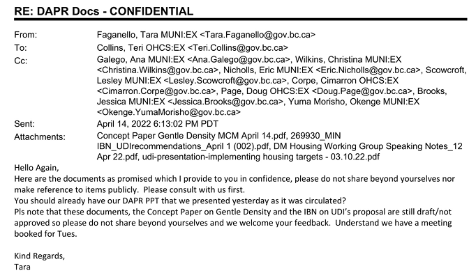 Freedom of Information reveals that the Province of B.C. was working to implement what the registered lobbying organization, the Urban Development Institute, had been pushing for. This culminated in the recent Housing Bills that override local government authority on zoning.