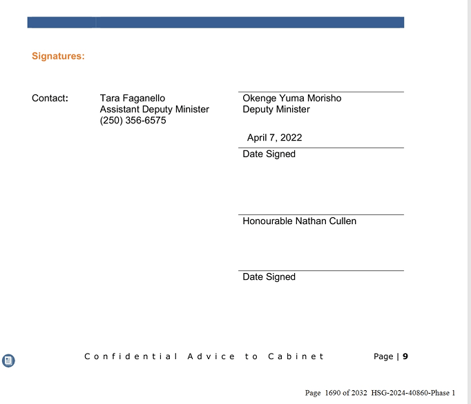 The briefing was also approved by the Deputy Minister at the time Okenge Yuma Morisho, who two days later on April 13, 2022 delivered a presentation titled “Overview of Work Related to Housing and the Development Approvals Process Review”, which can be read in full in this article: