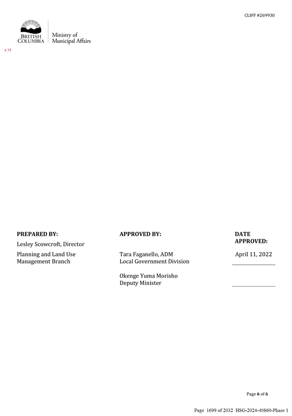 Note: The s.13 referred to at the bottom of the Ministry of Municipal Affairs briefing prepared for Cullen (the first image shown) and which continued on the subsequent page of it and others, is redaction, also known as severing of the text on the basis in FOIPPA: “Section 13 is a discretionary exception to the right of access to information. It permits public bodies to withhold information that would reveal advice or recommendations developed by or for a public body or a minister.