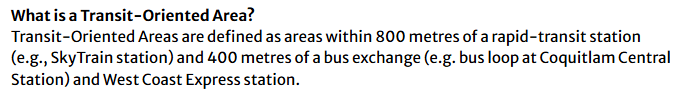 You can also compare the following as quoted from: Transit oriented development areas – Province of British Columbia (Accessed: Nov 21, 2024)
