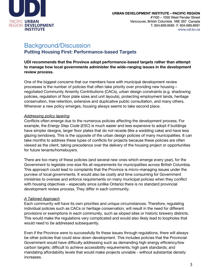 Official Community Plans and Housing Needs Reports, meeting the same desired outcomes of the UDI’s proposals? Working with stakeholders including the UDI and developers, local government staff etc.? Sound familiar?