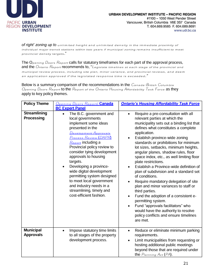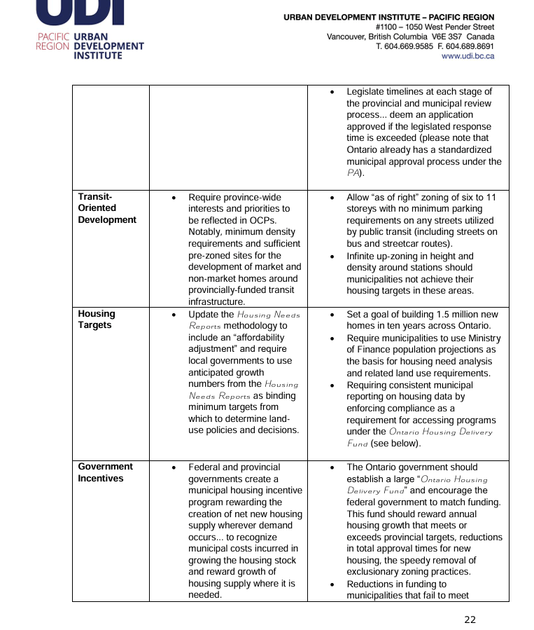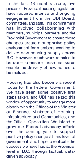Development Approvals Process Review, which the UDI was consulted by the Province on as a stakeholder, and involved a significant amount of content that looked remarkably similar to UDI material over the years.