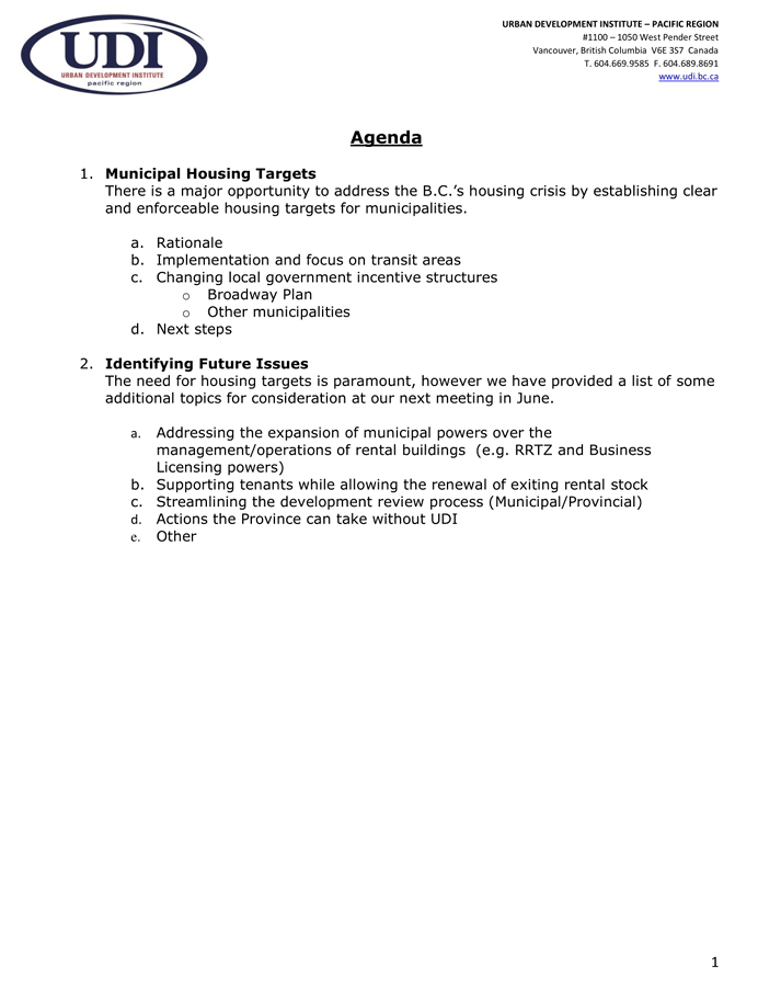A day before these emails and the Cabinet Concept paper for ‘gentle density’, the UDI met with Eby. Here is the agenda from that day: