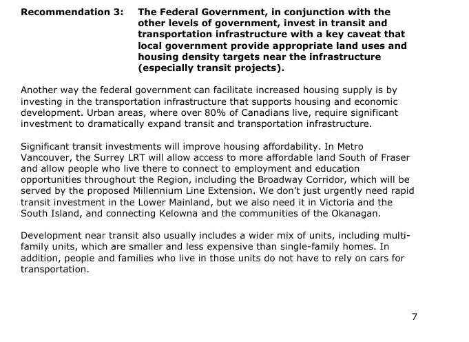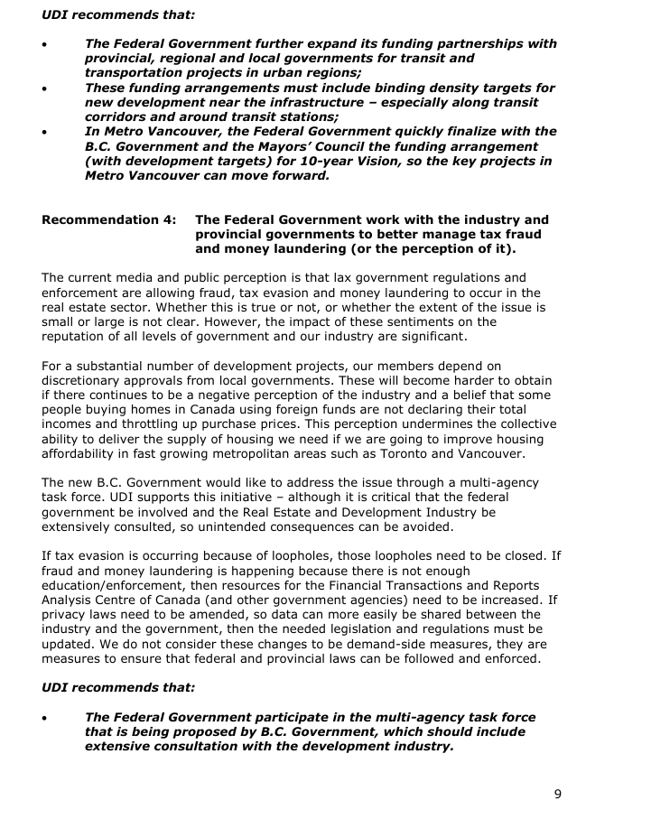 Appendix: Section of 2017 letter from the UDI to the Federal government offering a series of recommendations, including density targets around transit stations/corridors and for the adoption of TODs (Transit Oriented Developments).