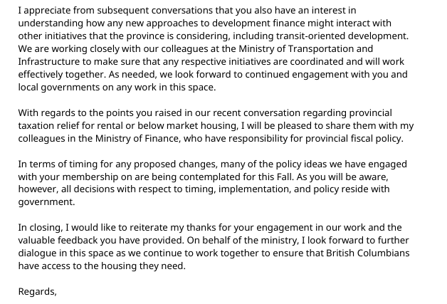 I consider the planner’s last email to be pretty nuanced. How preventing municipalities from turning down rezoning applications on the basis of height/density within prescribed minimums is not pre-zoning is beyond me.
