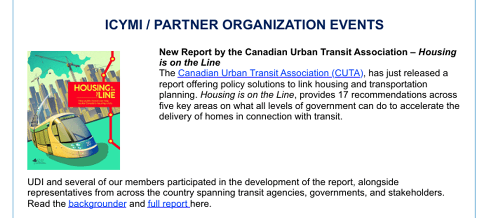 Image excerpt from UDI Policy and Advocacy updates newsletter Oct 31, 2023: