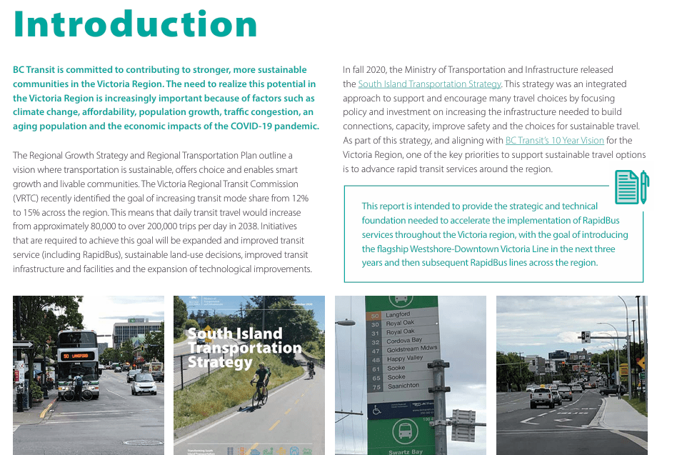Appendix: Screenshots from the BC Transit Victoria Regional RapidBus Implementation Strategy (2021)