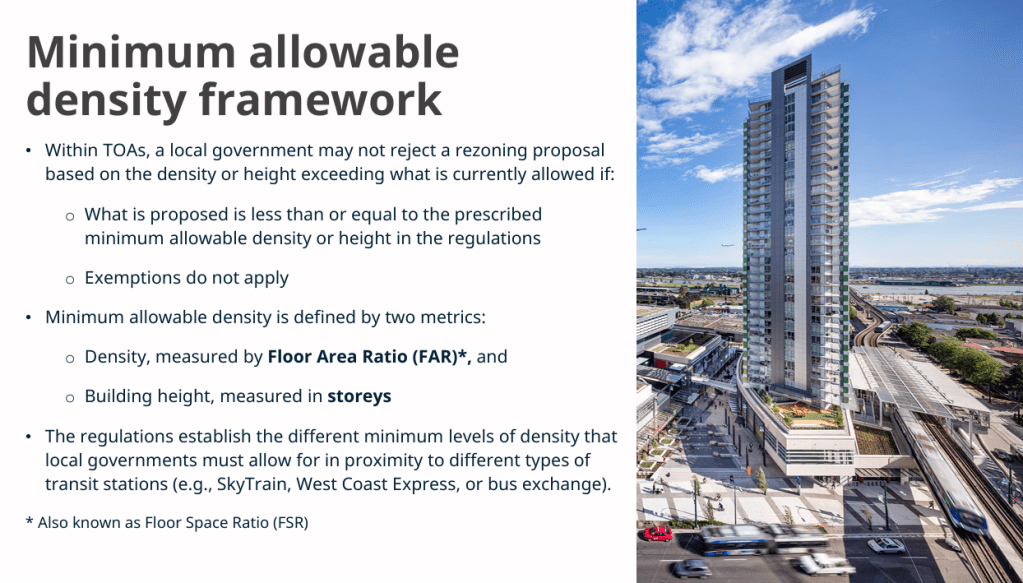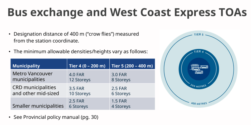 “(Note: provincial regs do not technically pre-zone areas, they just prevent municipalities from turning down rezoning applications on the basis of height / density within prescribed minimums).”
