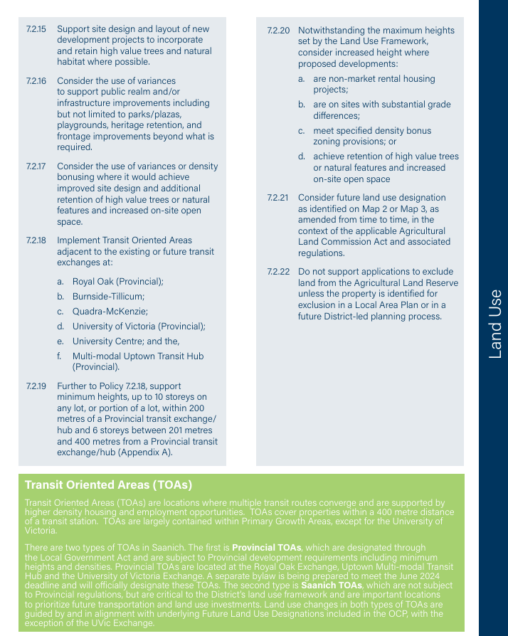 “Note that Saanich TOAs are not subject to provincial regulations (minimum density and height regs)”