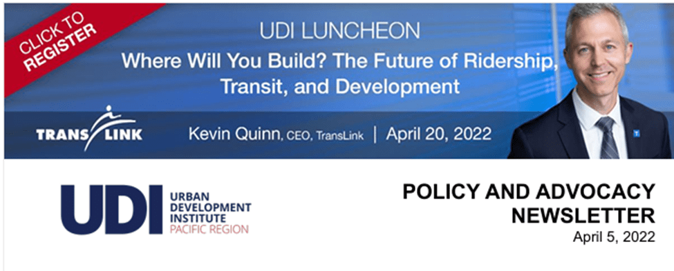 As mentioned previously, Urban Systems involvement in the development of both of those guides mentioned in the UDI’s Provincial Policy and Advocacy updates, was key: