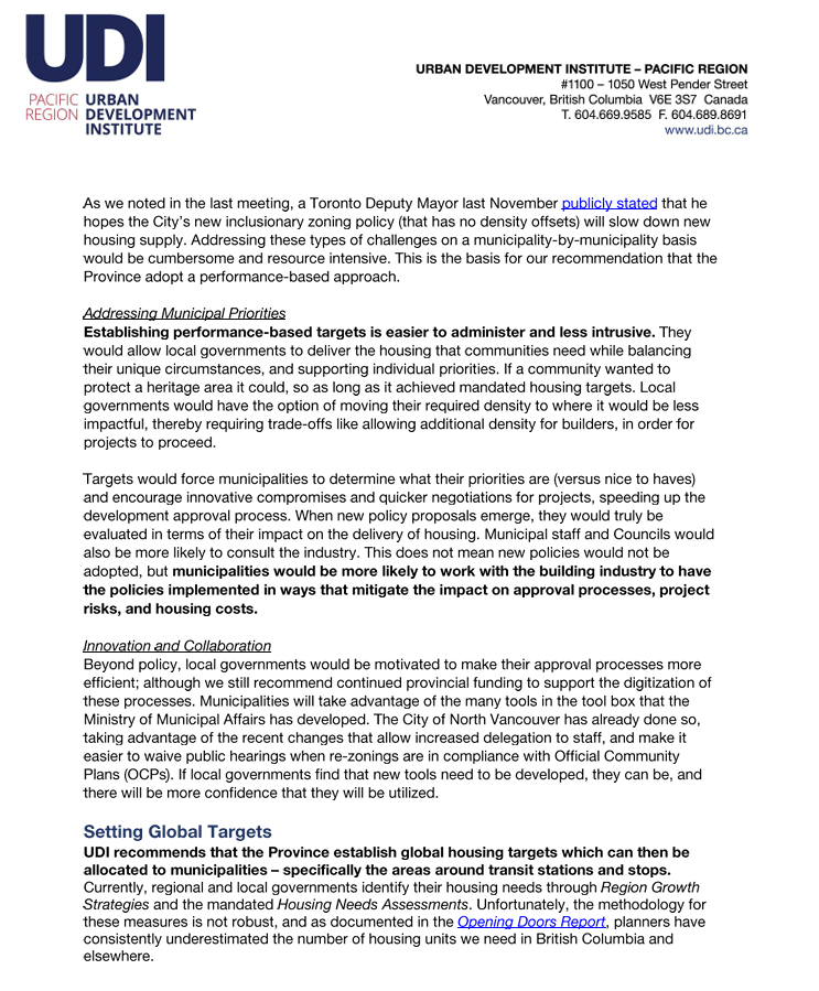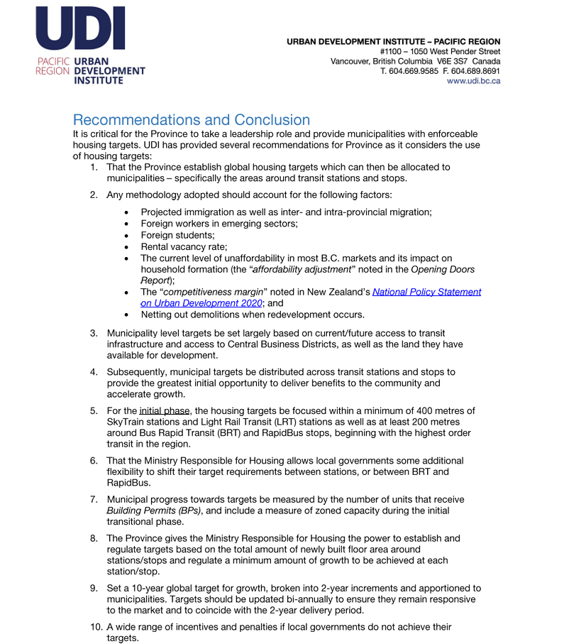 The Urban Development Institute lobbied the Province of BC to implement what they called “Global Housing Targets”.