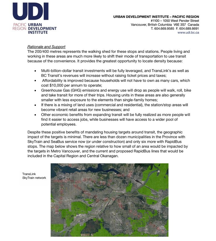The following 3 pages are from a UDI lobbying letter that accompanied the above presentation to Eby on March 10, 2022: