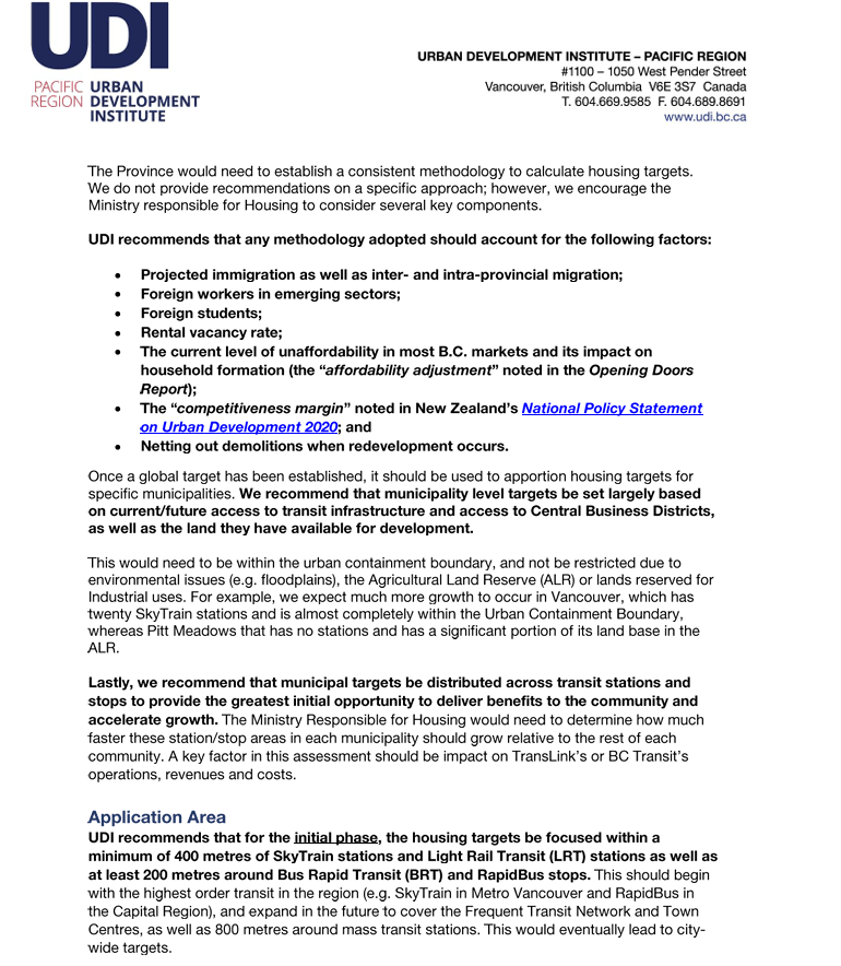 The UDI also lobbied that the Province establish “growth projections” for British Columbia and its regions, which could then be used to establish growth projections for municipal Housing Needs Reports and housing targets.”
