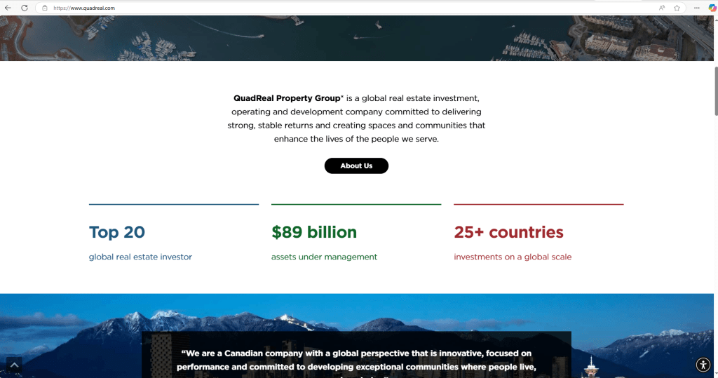 Here is a snapshot of QuadReal’s website at the time of writing: