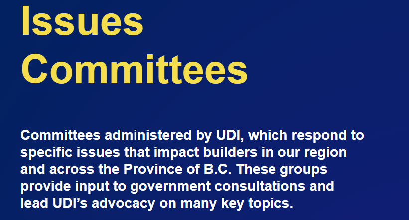 Conclusion: The UDI’s now-hidden list of committees that work with the government, like its previously hidden members directory lists raises the question of where does government start and the development lobby end and why is the UDI and the government of BC so intent on obscuring those connections?