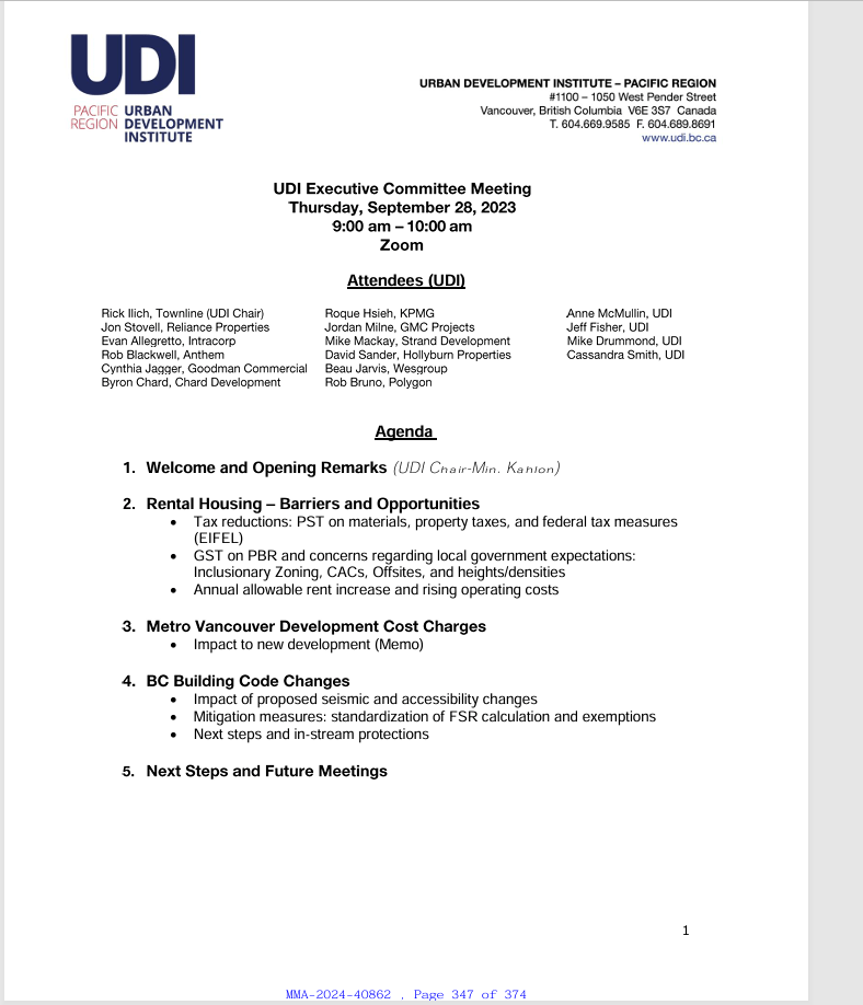 The UDI’s Executive Committee which included those at the top in the UDI, was not publicly listed as one of the committees on the UDI.org website, although its existence has been verified through Freedom of Information as well as its lobbying of the Province of BC including David Eby when he was the Attorney General/Minister Responsible for Housing, and Ravi Kahlon as Minister of Housing.