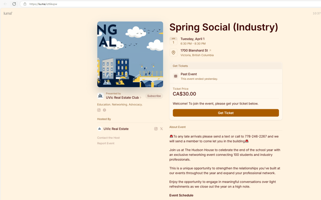 UVic Real Estate Club 2025 Spring Industry Social once again shows how the club is inseparable from the UDI, its finances, and its agenda.