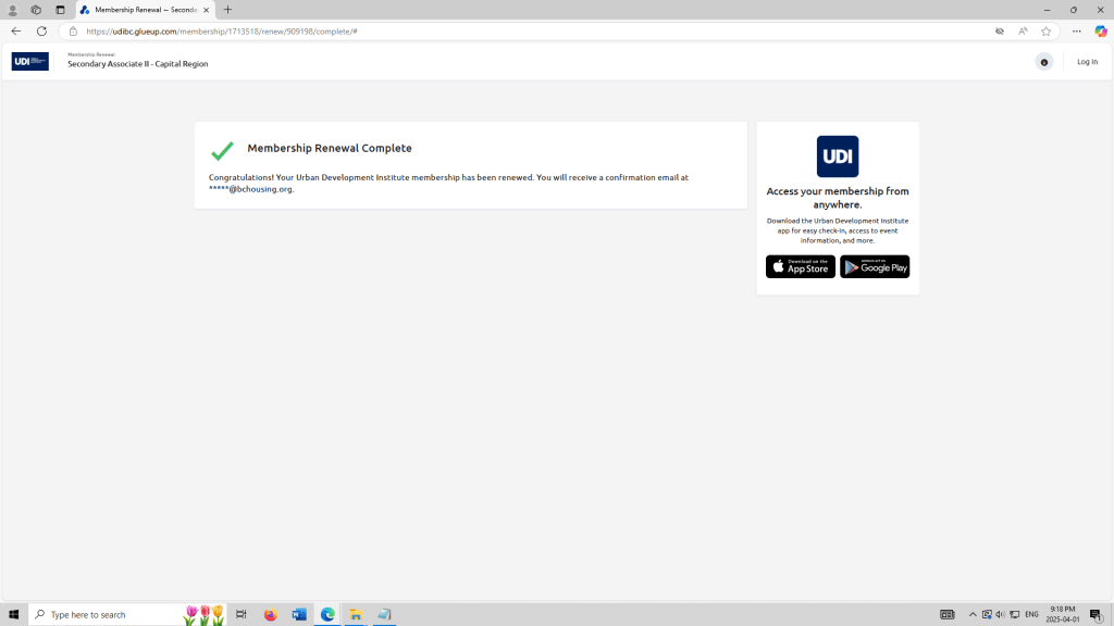 BC Housing did make a payment for the renewal of the UDI Capital Region Secondary Associate II membership for the most recent period (Nov 2, 2024-Nov 1, 2025). The invoice and proof of payment for that is below.