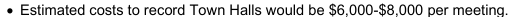 “Estimated costs to record Town Halls would be $6,000-$8,000 per meeting.”