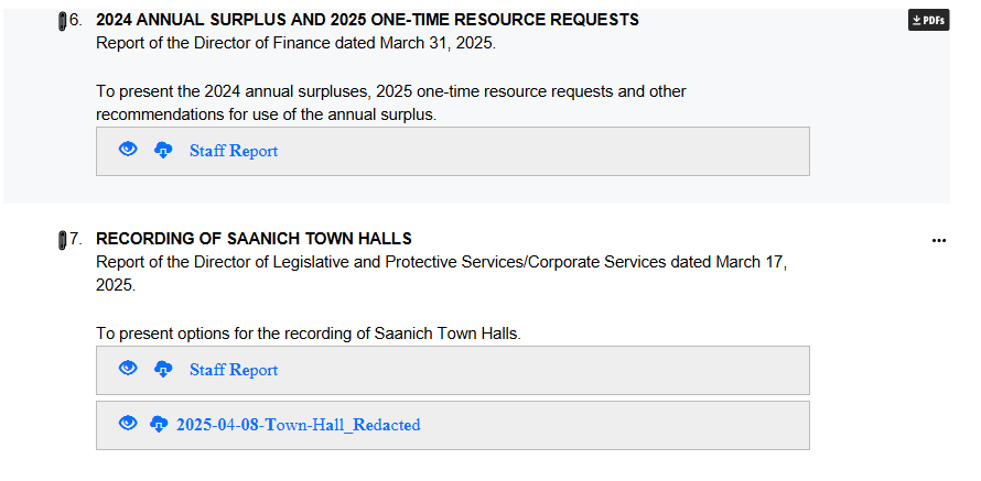 Conclusion: The first Saanich Town Hall of 2025 that was supposed to take place in February was cancelled. A Saanich Town Hall is scheduled for May, but is currently not set (at least overtly) to be recorded.