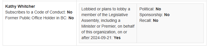 Whitcher had previously in 2023, unsuccessfully addressed Saanich Council, and View Royal Council asking for them to not discontinue their memberships with the UDI. At the Sept 12, 2023 View Royal Committee of the Whole, she had stated “UDI is not a lobbying group” despite being registered as the UDI’s in-house lobbyist on the BC Lobbyists Registry, both then and now.