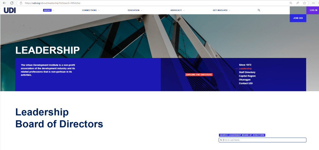 Was the UDI reorganizing by perhaps centralizing the organization and eliminating its branches? The UDI branch websites had gone down on Nov 21, 2023 the same day that the Township of View Royal Mayor and Council ratified their decision to end their District’s UDI membership.