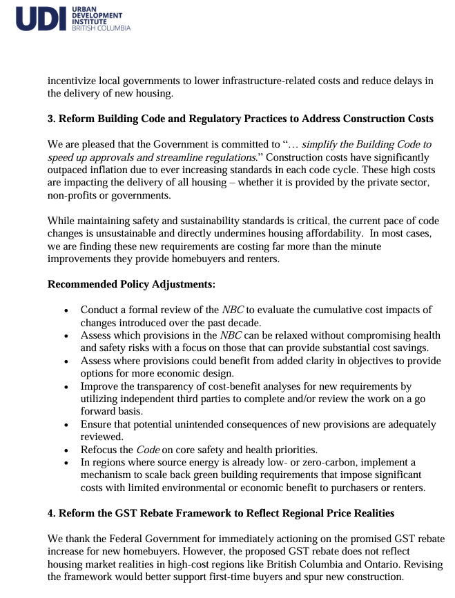 The UDI lobbies the Federal Government via Gregor Robertson the new Minister of Housing and Infrastructure, and the former Mayor of Vancouver.