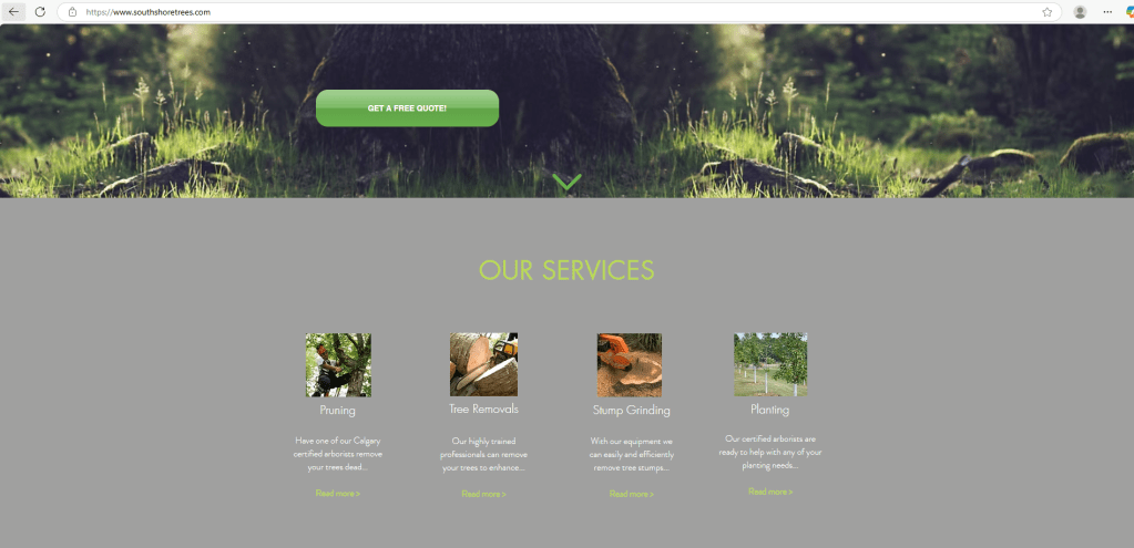 The following are screenshots from their home page Southshoretrees.com at the time of writing: