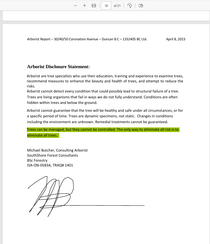 One response to ““Trees can be managed, but they cannot be controlled. The only way to eliminate all risk is to eliminate all trees.” – Arborist Disclosure Statement to multiple municipalities.”