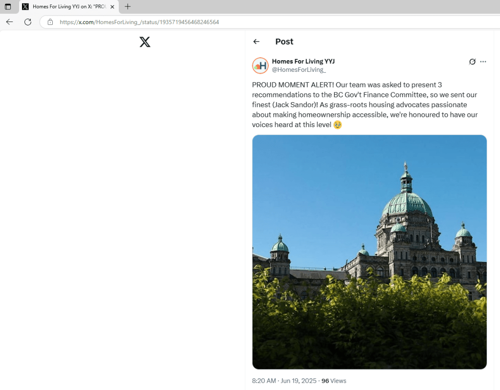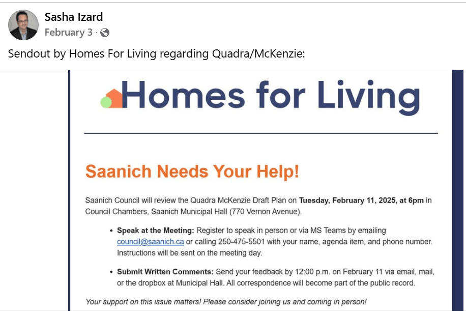 On February 3, 2025 I reposted on the CRD Watch Facebook page the following send out from the Homes For Living newsletter: