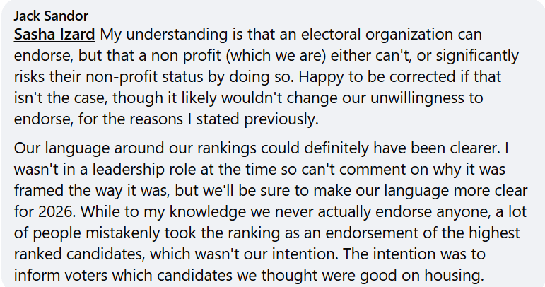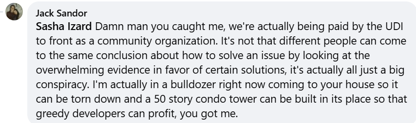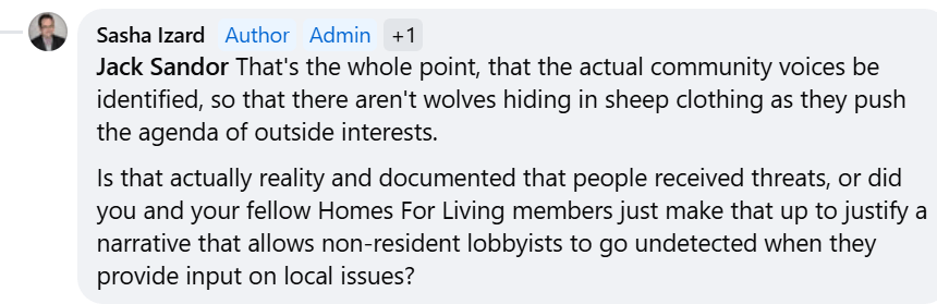 Throughout the conversation, and also speaking with him in-person once outside a council meeting, I was impressed by Jack Sandor’s affability and candor, unusual for Homes For Living, whose members can be pretty cagey about the organization’s activities. On the contrary, I found Sandor’s responsiveness to be refreshing.