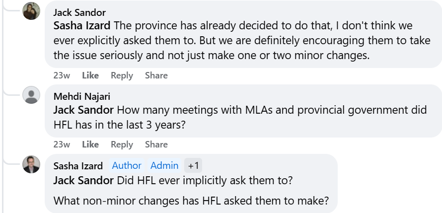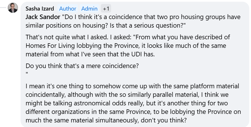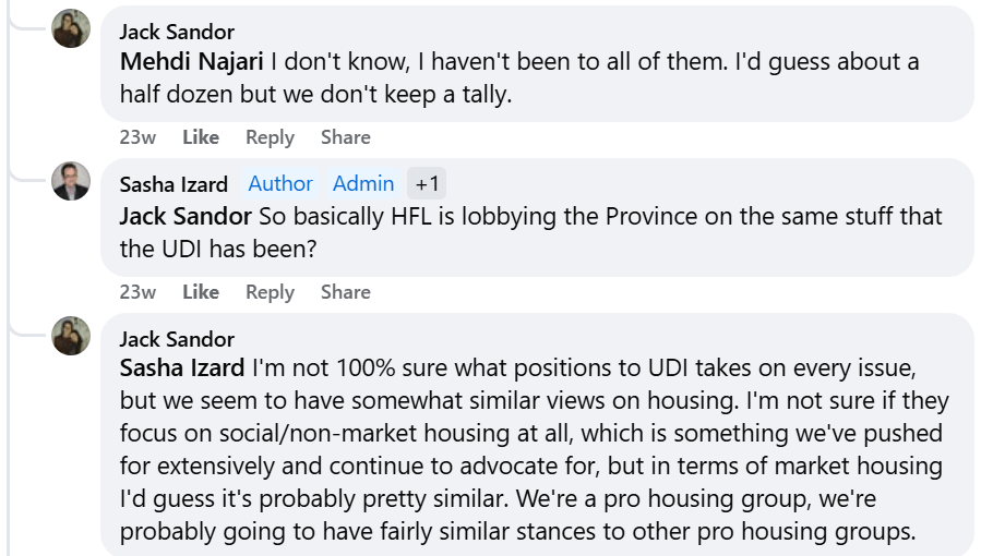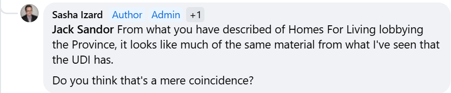 Sandor’s double-edged sarcasm aside, his confusion about Homes For Living’s registration status in regard to lobbying, is contrasted with his informative comments about Homes For Living lobbying activities; including mentioning meeting with MLAs to convince them of policy, something that had long been suspected, but previously appears to have gone under the radar.
