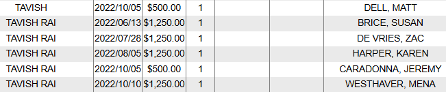 The name Tavish was on $6000 of donations to candidates last election, and all but $500 of that from the name: Tavish Rai.
