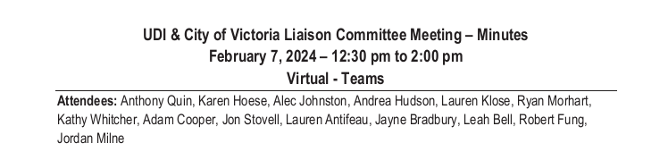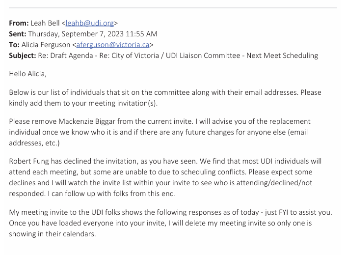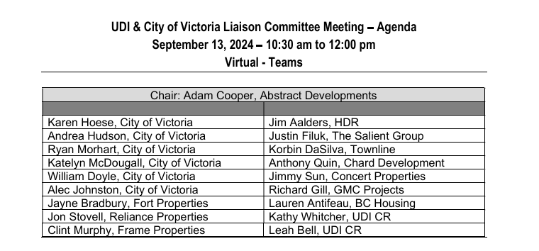 The following are other documents from City of Victoria FOIs, that reveal that Antifeau was involved in other UDI-Victoria Liaison Committee Meetings, while at BC Housing.