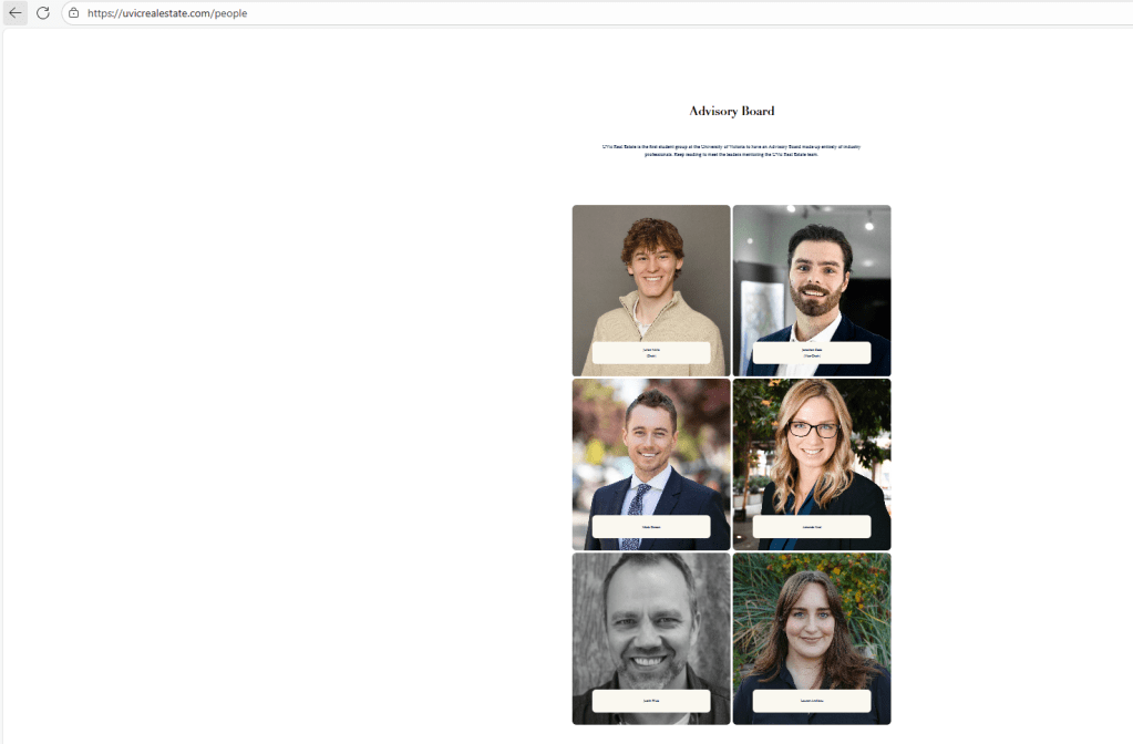 Oct 16, 2025 screenshot of the UVic Real Estate Club’s Advisory Board (formerly named the UVic Real Estate Club Board of Directors):