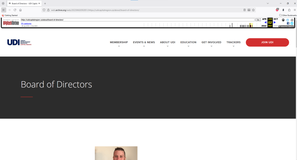 Archive.org screenshot of the UDI Capital Region’s Directors from June 2, 2025