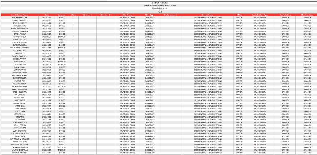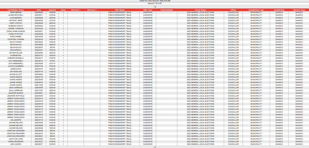 3 responses to “List of campaign donations made by those involved in development and real estate to the campaigns of those who were elected to Saanich council in the 2022 election.”