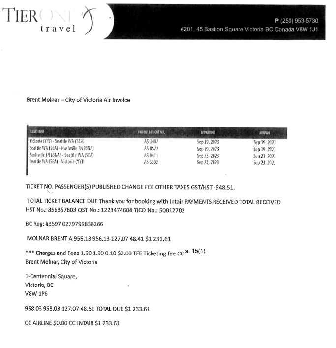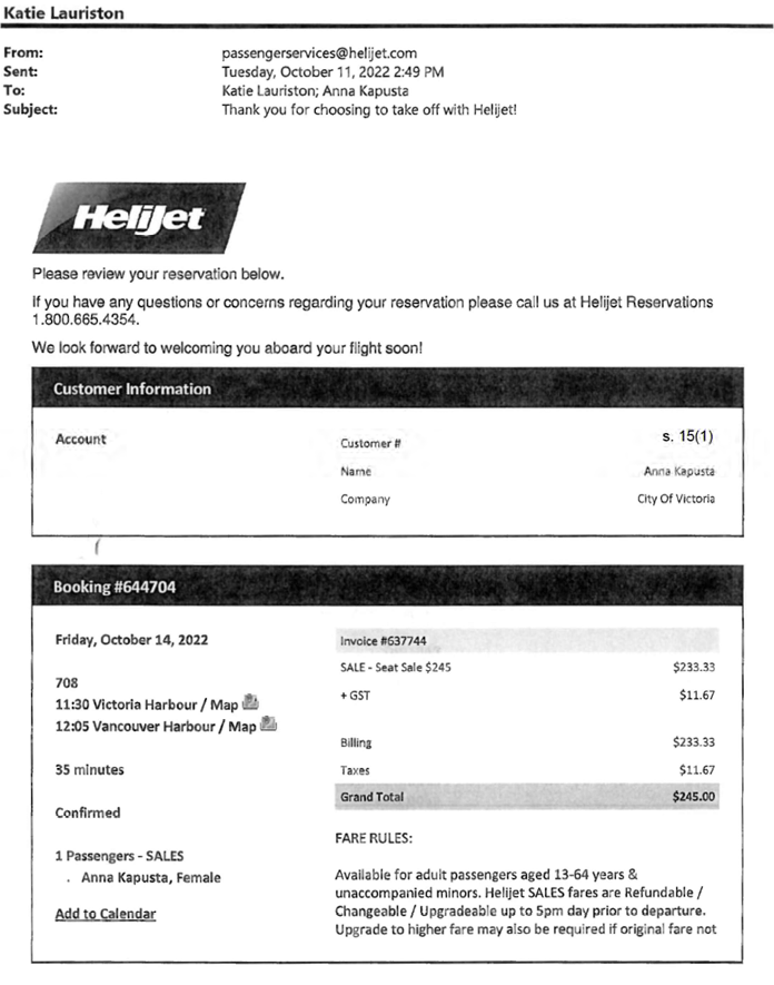 Helijet flights to UDI event by City of Victoria employee: