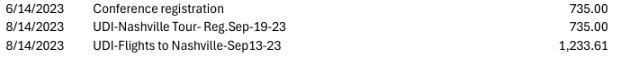 The following is the list of payments included in the FOI. I have included in this article some of the many invoices that I received. The ones I included are related to flight expenses and associated event fees. Costs associated with flight expenses and related event expenses, I’ve excerpted above the total list of expenses: