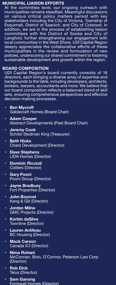Excerpt: the UDI’s Advocacy Initiatives regarding the City of Victoria, its paying member: