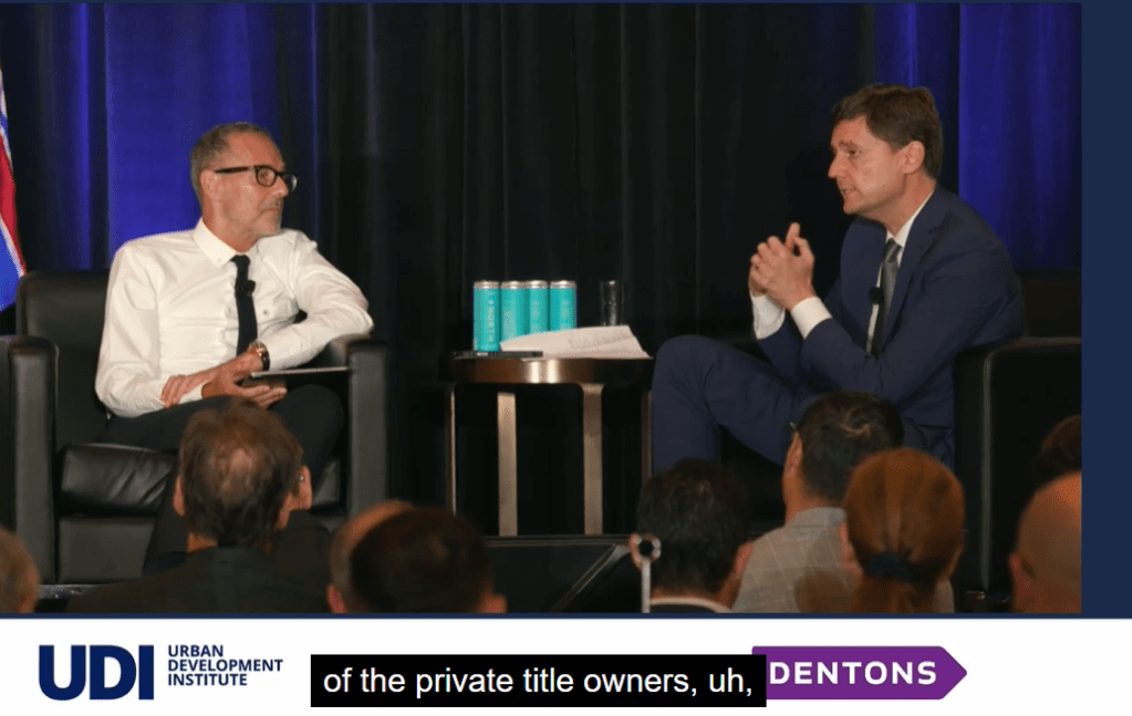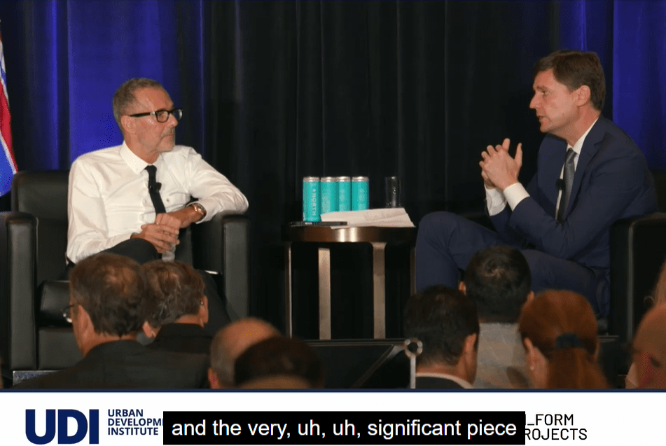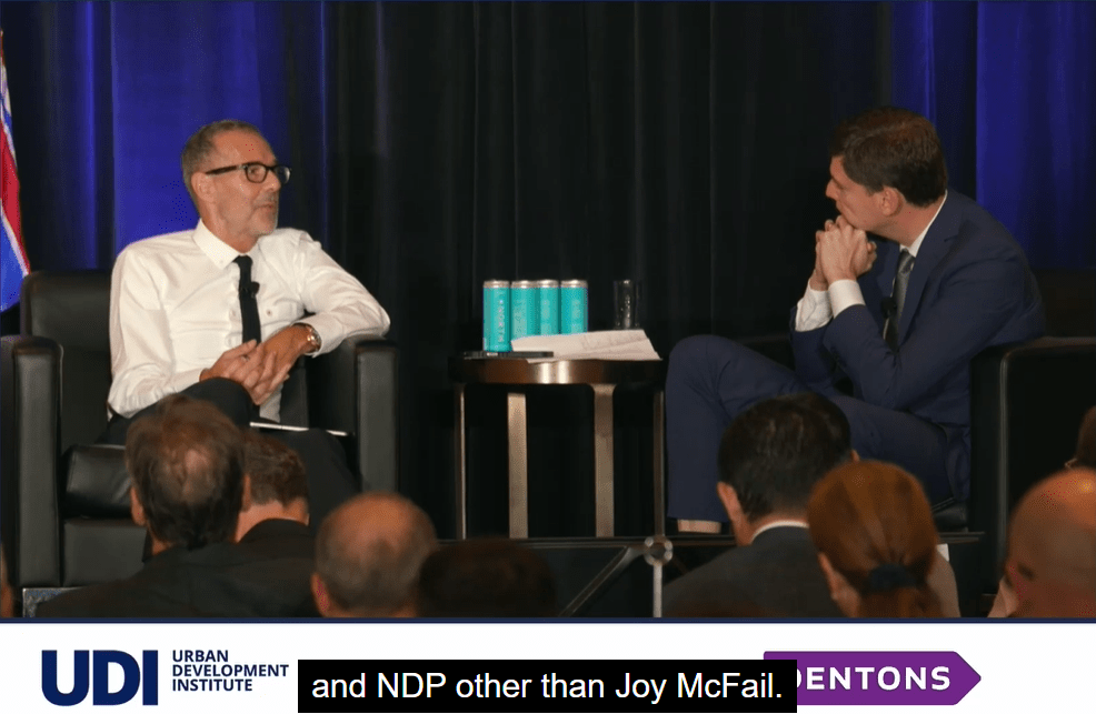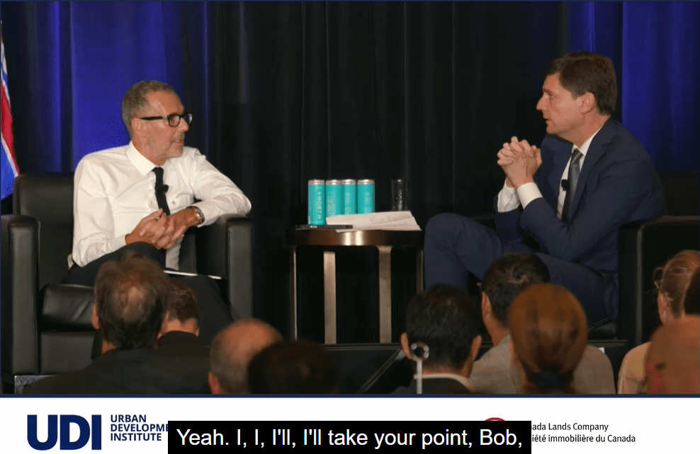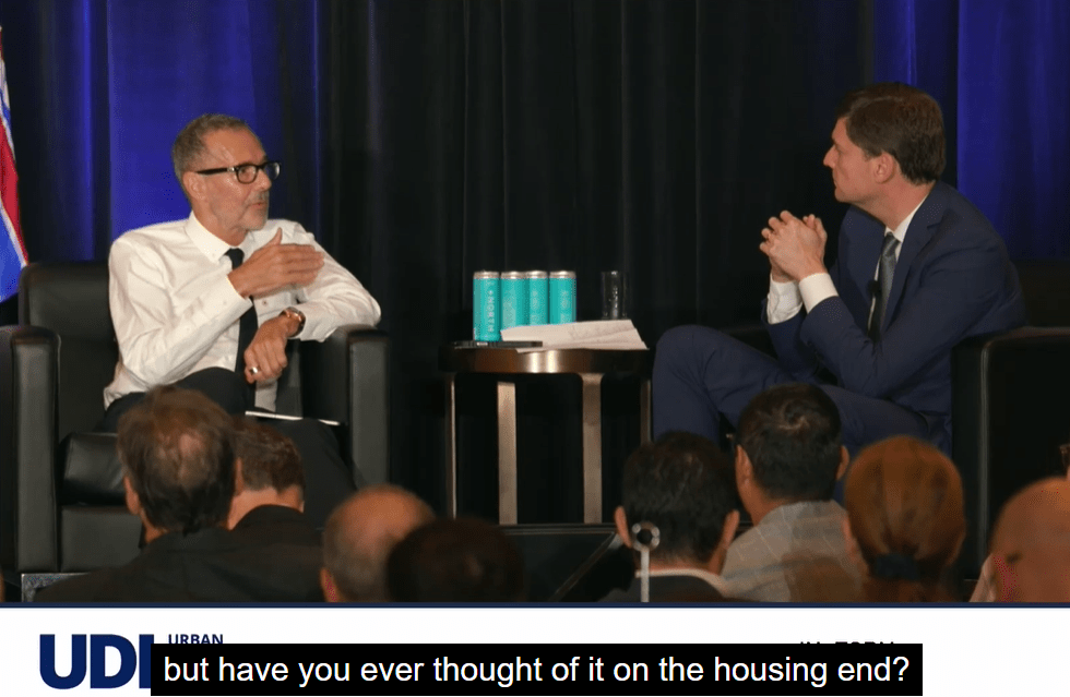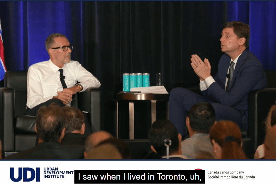 In the section covered here in part 2, Eby responded to Rennie’s comments by affirming the development industry’s access to him as Premier, and his government’s partnership with it. He and Rennie then discussed Rennie’s suggestion of a potential real estate czar, breaking away from the theme of such a proposed czar intervening on local governmental decisions around housing/zoning etc., which were part of the first part of their discussion, which was covered in part 1 of this article.