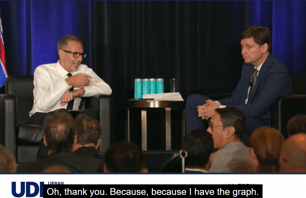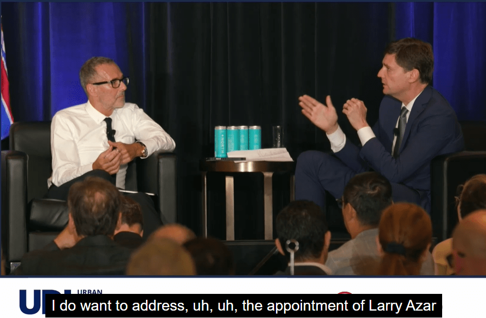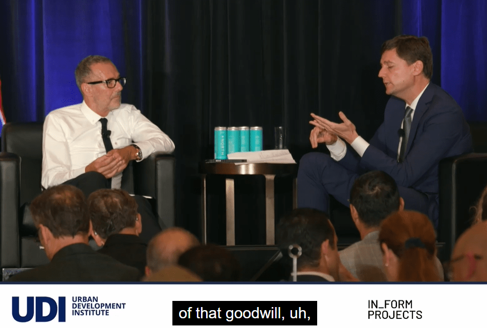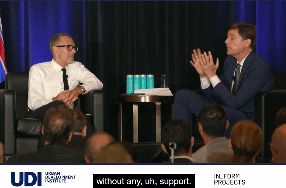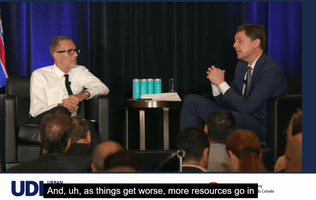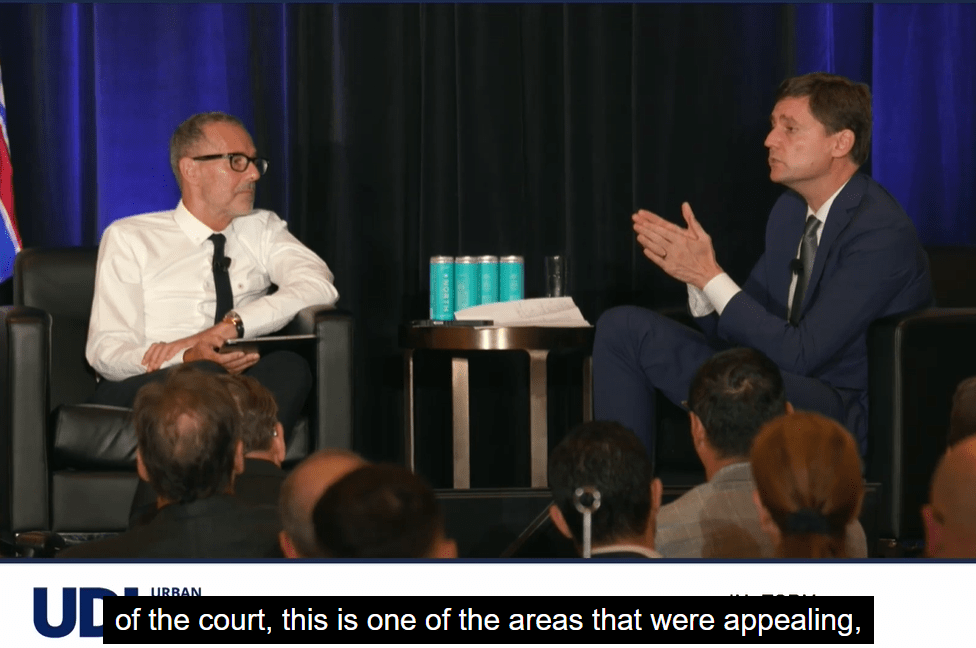 In the section covered here in part 2, Eby responded to Rennie’s comments by affirming the development industry’s access to him as Premier, and his government’s partnership with it. He and Rennie then discussed Rennie’s suggestion of a potential real estate czar, breaking away from the theme of such a proposed czar intervening on local governmental decisions around housing/zoning etc., which were part of the first part of their discussion, which was covered in part 1 of this article.