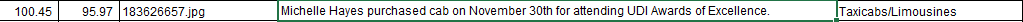 One of the things that caught my eye was a category Taxicabs/Limousines for UDI events. There are a number of these entries in the BC Housing PCard records and the cost to BC Housing for them.
