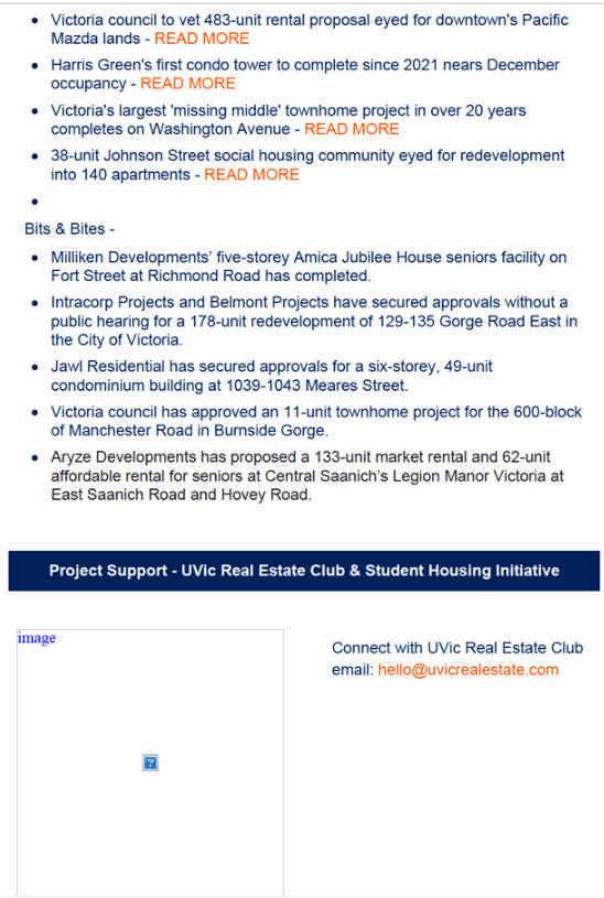 There was a second organization mentioned in this newsletter under the heading “Project Support UVic Real Estate Club & Student Housing Initiative”: