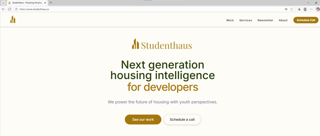 Needless to say, I decided to jump down another rabbit hole, by following the link provided, studenthousing.ca, which instantly redirects to Studenthaus.ca.