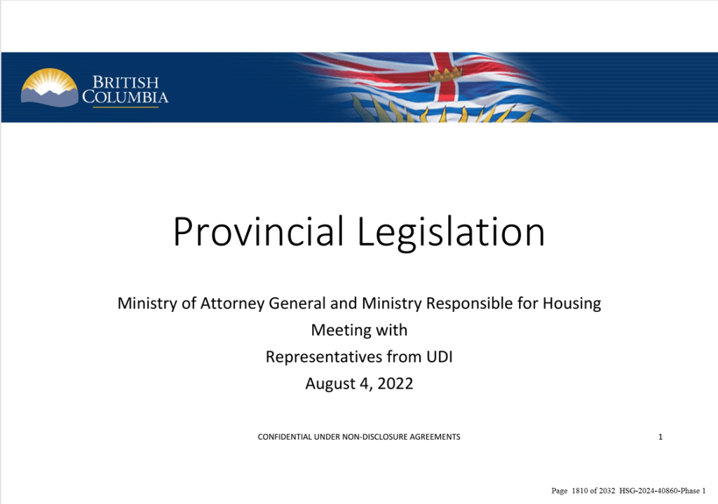 At the core of this alliance are Non‑Disclosure Agreements between senior UDI figures and provincial officials, signed in the context of consultations on housing targets, the Housing Supply Act, and the suite of housing bills that now override municipal planning powers. These NDAs are not incidental; they function as formal secrecy devices, ensuring that lobbyists can help shape binding provincial policy on local zoning and housing supply while their identities, advice, and leverage remain hidden from the public that must live with the consequences.